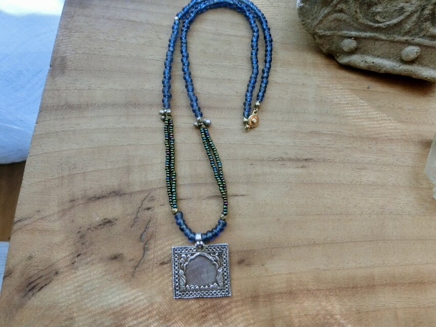 *祈りのネックレス @リサイクルビーズ+オールドビーズ+シルバーチャーム(ミフラーブ)