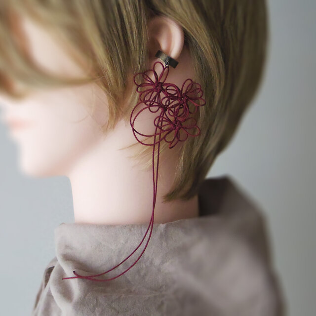 かたっぽイヤーカフ「咲キ染ム陽ニ」(アイボリー×淡ピンク×臙脂)画像どうりの繊細で美しい作品が届きました。