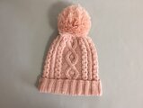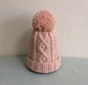 ゆったりめニット帽アルパカ×ラムウール淡いピンク系ボンボン付き【受注制作】+ブローチ