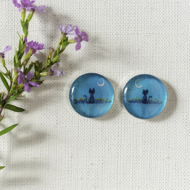 手描きの絵を樹脂で閉じ込めたカフスです。