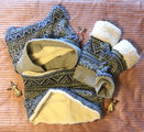 表地は、うっとり素敵なジャガードニット。ウールではないので暖かさには欠けますが、裏生地にをオーガニックファー使用しているので、ふわふわ気持ちよく、暖かいです。