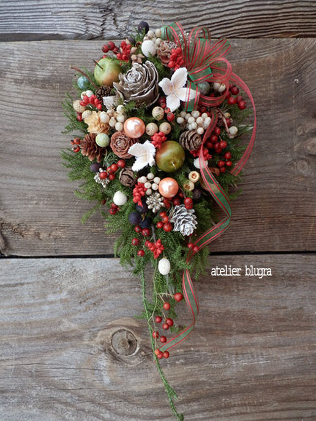 しっとりした大人色のリースで、とても素敵です。 毎回、素敵な作品をありがとうございます。