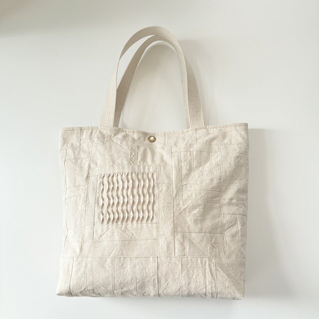 綿麻のナチュラルなキャンバス地を繋いで作りました。