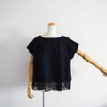 ふんわりコットンローン&レースフレンチスリーブAラインブラウス(ブラック)<受注制作>