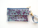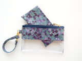 リバティの人気生地、(ビニールコーティングつや無)、Wiltshire ウィルトシャー(ネイビー)で開けなくても中身が見える便利なポケット仕切り入り、クリアポーチ(カードサイズ)を作りました。