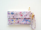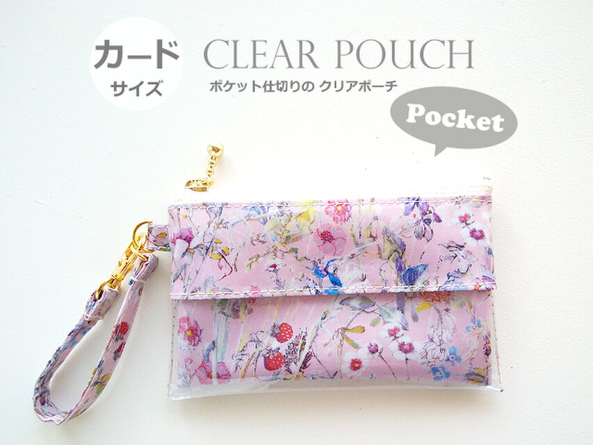 ポケット仕切りのクリアポーチ カードサイズ ワイルドフラワーズ ピンク