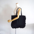 ハーフリネンたっぷりフリルギャザーレギュラーサイズトートバッグ(ブラック)