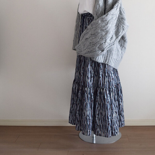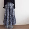 たっぷりギャザーのティアードスカート(ランダムストライプブルーコンビ)<受注制作>
