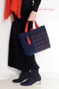 ・表の濃い紺地に赤と水色のティアドロップ柄(ティアドロップの高さは1センチ)は、鎌倉スワニーで購入したウール。