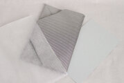 ブラックとシルバーの絹糸を織り上げた国産の生地で、細かい格子になっています。