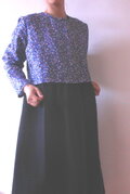生地の切り返し部分は優しいギャザー入りですがギャザーとのつなぎ目部分を隠した使用にしているのですっきり感がありトップスとスカートを着こなしているようなドッキングワンピースデザインにになっています。