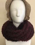 イタリア製のウール、アルパカ糸と日本製のモヘヤ糸の2本取り、変わりゴム編みで仕上げたスヌードです。ストールやマフラーと違い、首にかけておけるので、紛失する心配がありません。