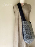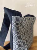 オーバーショットという技法を使って織り上げた手織り布をバッグに仕立てました。
