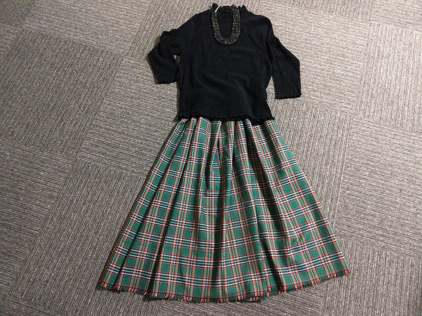 ★一点もの★女学生みたいに!★グリーン★チェック★たっぷりギャザー・スカート★受注製作★