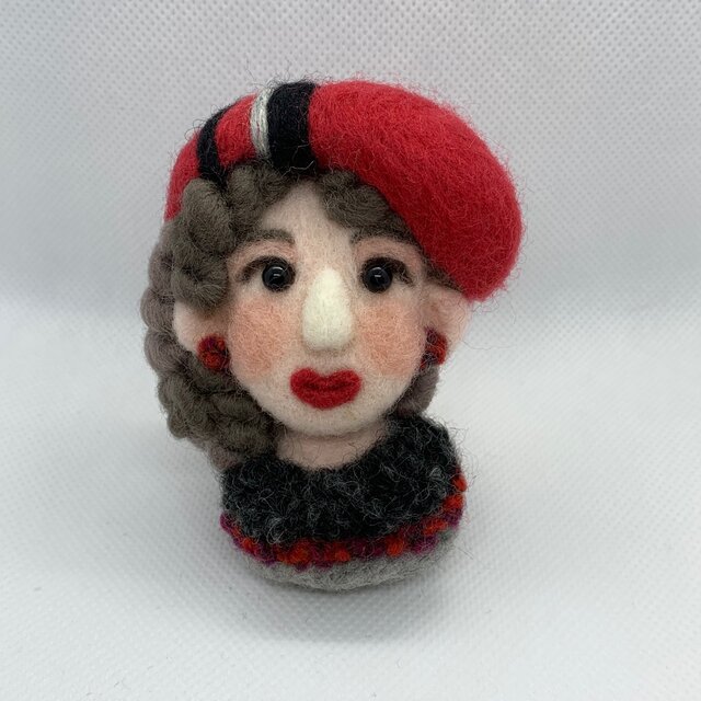 大人ブローチ(白い髪の花まとめ髪さん) -
