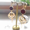 ゴールドのメタルパーツ、落ち着いたボルドーカラーが温かく、大きめアクセサリーですが、大人の上品なイメージです。