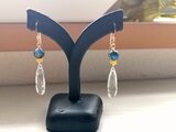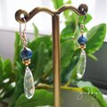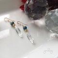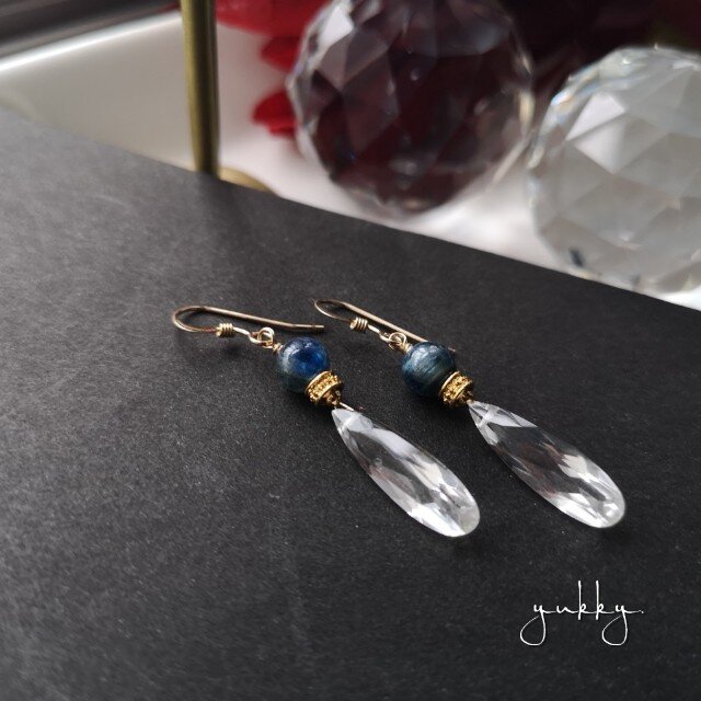 シックなカラーのカイヤナイトに、合わせやすいクリスタルでピアスを作りました。(=^_^=)