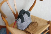 グレーの厚地の久留米絣のバッグです。