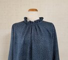 襟ぐりと袖口にフリルが付いて、顔回りを華やかに見せてくれます。