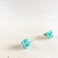 薄荷玉のような、ミントカラーに白いラインを入れた涼やかなピアスです。
