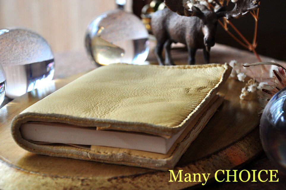ブックカバーの裏張りにエルク革を使っていますとの説明書き。 届いてビックリ‼️こんなのあります❓ 二枚重ねの厚みが・・・ なんと言うブックカバーでしょう。 作家さん大丈夫ですか?利益度外視でやってません? エルク革って魅力的ですね、他の革にはない質感。 このブックカバー、モフモフした二枚重ねの分厚い手触りと、手縫いの温かみにもう夢中になってしまいそう。 これは贅沢な大人の読書アイテムだと思います。
