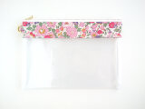 リバティの人気生地(ラミネート つや無)、 ベッツィ Betsy (ピンク)で中身が見えるクリアポーチを作りました。