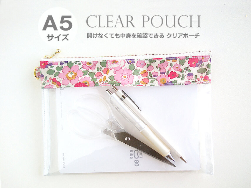 リバティ A5サイズ クリアポーチ (25) ベッツィ ピンク