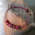 アンティーク 金赤ホワイト 丸 + チンシルバー 赤 ブレスレット 百世 momotose(東)