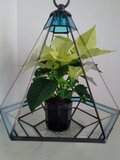 六角形のクリアーガラスに青でアクセントを付けました。