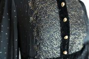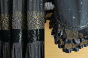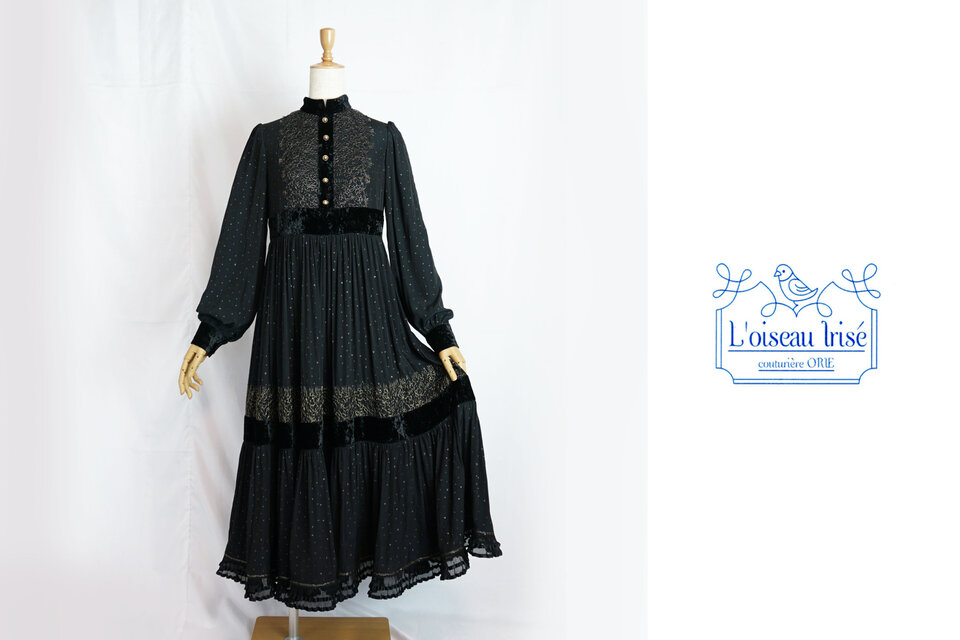 金コードが繊細に織られたフランス製のレースや裾飾りで、華やかさを際立たせました。