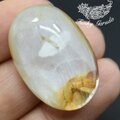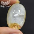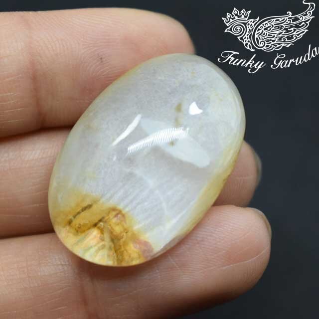 つるつるに美しく磨きこまれた研磨と水晶の透明感、自然の色合いであるホワイトガーデン。ワンポイントのオレンジイエローカラーの内包物も際立つ美しさのものです。