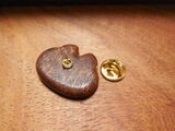 とても深くうねった杢の出たサペリを使った平べったいピンバッジです。
