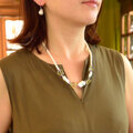 ネックレスの中心部にボリューム感をもたせ、お首周りをすっきりさせるデザインです。