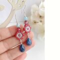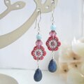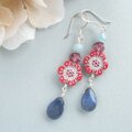 060325 120219 花 フラワー 赤 レッド デュモルチェライト アクアマリン デニム ブルー 天然石 ペアシェイプ プレゼント プチギフト ご褒美 誕生日 ピアス イヤリング 揺れる お呼ばれ デート お出掛け パーティー ノンホールピアス ドロップ 夏 大人可愛い シルバー パワーストーン