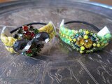 ★ヴィンテージビジューモチーフ付きヘアゴム1点・A:ビジュー[イエロー・グリーン系] × ベース[グリーンミックス系]の販売です★