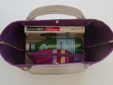 ハンドル付けの裏面に補強シートを貼り付けているので型崩れもしにくくキレイに持っていただける工夫もしています。