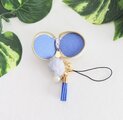 ブルーのミニタッセルとグレーのミニファー付き