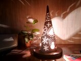 星や雪だるま、ツリーなどクリスマスをイメージした穴から零れる光が、背景へ暖かくぼんやり映し出します。