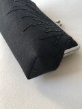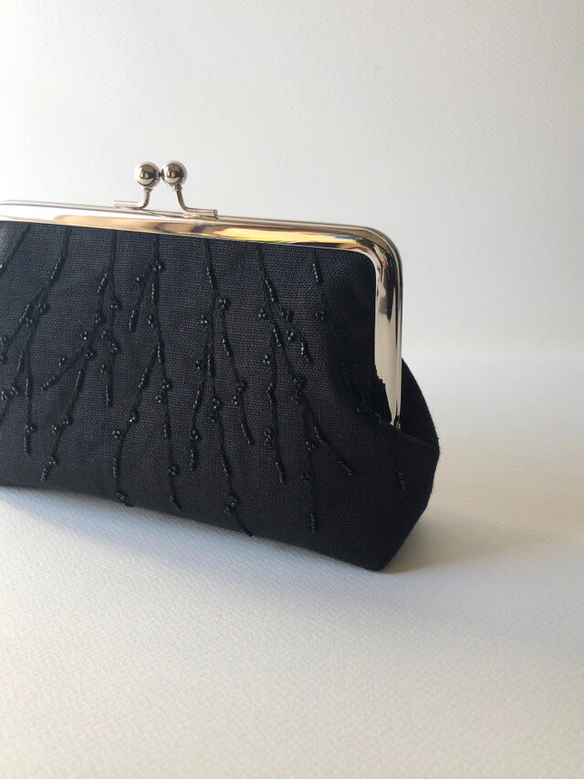 黒いリネン生地に刺繍糸とビーズで枝のようなつららのような刺繍をしました
