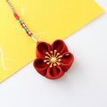 日本の伝統工芸、つまみ細工でできた紅樺色の小花のストラップです。