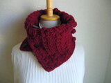 ボタンは4個、左側3列縦に並ぶ模様編みには穴がたくさんありボタンを入れられますので、ネックウォーマーのゆるさの調節ができるほか付け襟のようにもお使いいただけますし、半分に折ったり対角線に折ったりなどして模様の見え方を変え様々なアレンジをお楽しみいただけると思います。
