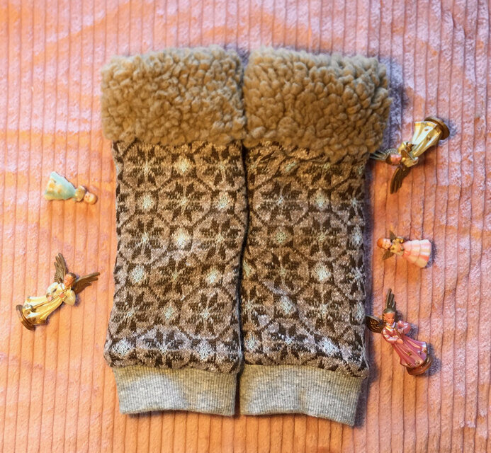 送料無料 ふわくしゅアームウォーマー ラトビア・ジャガード ショコラ+ふわもこ生地カフェオレ