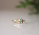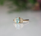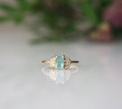 もう少し深いブルーグリーンでマットな質感のものをよく見かけるのですが、このピースは透明感があってどこか幻想的なミルキーな、シアーな質感があって、そしてやはり他のブルー系のどれとも違う感じのブルーなのが魅力的なひとつぶです。