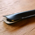 上質なレザーが映える、シックなブラックカラーの万年筆ケースです。