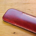 上質なレザーが映える、深みあるレッドの万年筆ケースです。