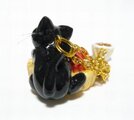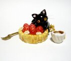 にゃんこのしっぽ○いちごタルトのバッグチャーム○猫○スイーツデコ〇黒猫