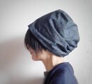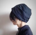 コットンのネイビーのリバーシブルのターバンな帽子です。
