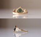 商品画像や説明の通りで、素敵なリングでした。氷ひすいの優しい色と、アームは実は仏さまがいるという、個性的なデザインに惹かれました。また、仕上げの艶消し加工が本当に綺麗です。指にスッと馴染み着け心地も良いです。たいへん気に入りました。大切にします。丁寧なご対応もありがとうございました。