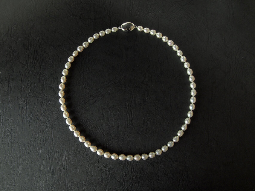 ライスと呼ばれる形をした真珠を使用したネックレスです。