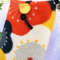 表の布はカラフルな花柄の紬の着物の生地を使用しています。